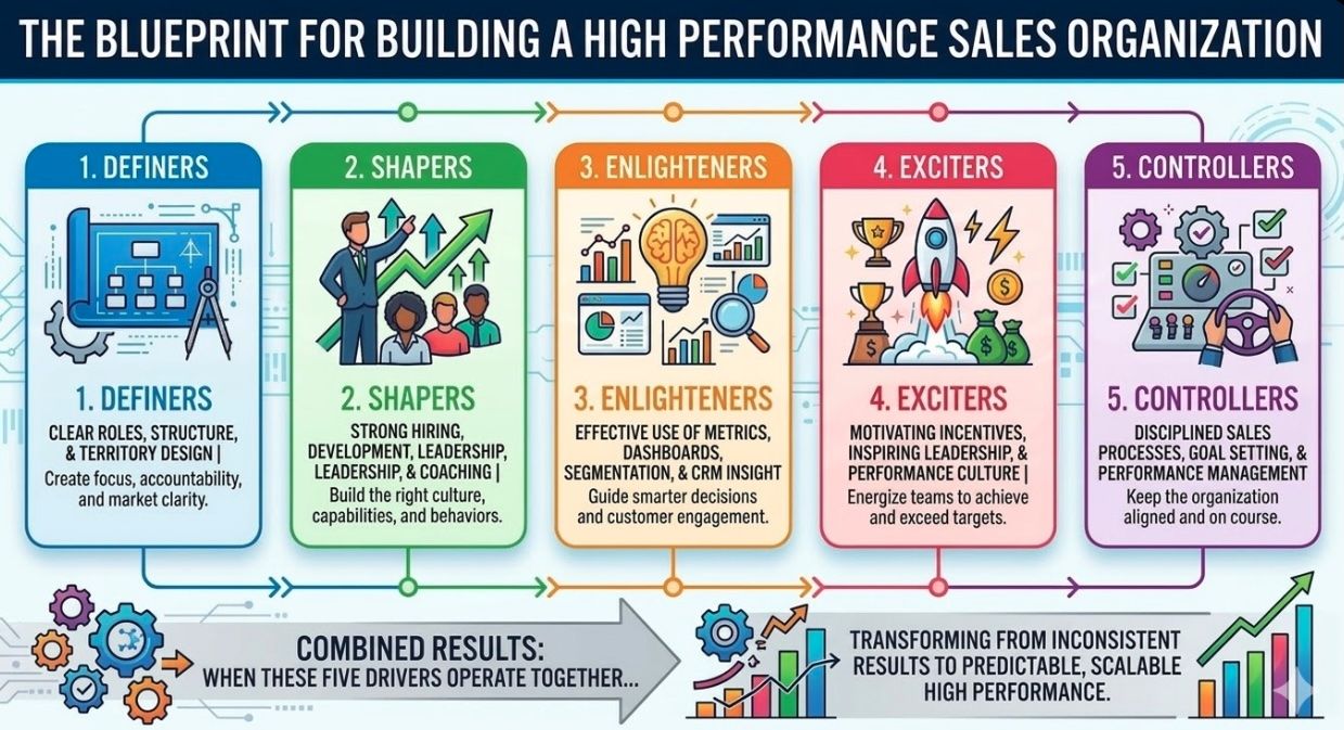 To help organizations consistently outperform by implementing a disciplined, scalable sales system built on the five key drivers of high-performing sales organizations.We don’t chase short-term spikes.We build long-term sales performance infrastructure.